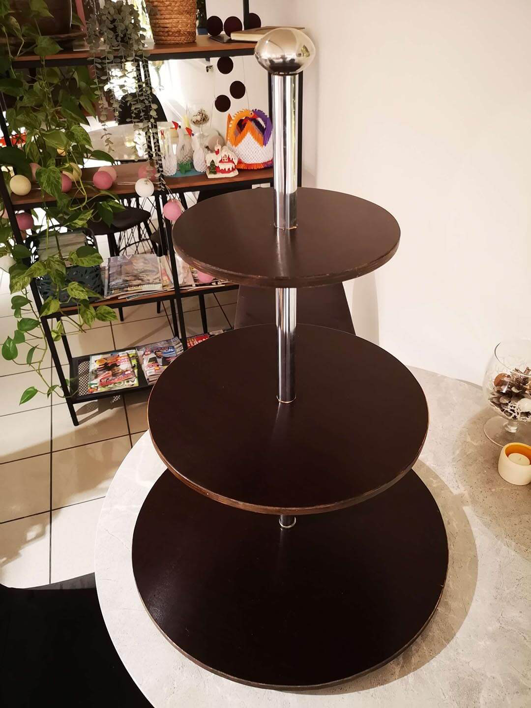 Elegants, klasisks koka statīvs – pieejams gaišā vai tumšā tonī. Piemērots gan kāzu kūkai, gan kūciņām.
