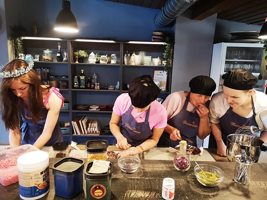 Iegūsi labi pavadītu laiku un našķus, ar kuriem pārsteigt savus mājiniekus! Savukārt par visu pārējo parūpēsimies mēs - nodrošinām priekšautu un galvassegu, receptes izdruku, kā arī brīnišķīgu atmosfēru ar dzērienu pēc dalībnieka izvēles.